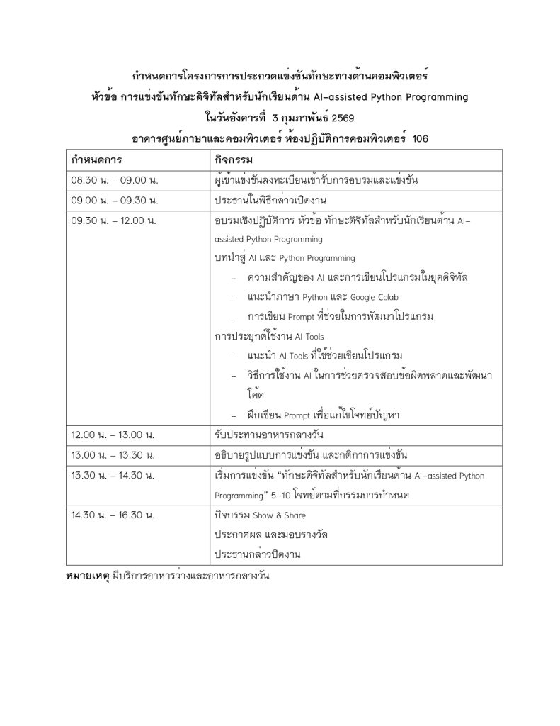 - มีการอบรมพื้นฐาน Python + AI Tools ในช่วงเช้า